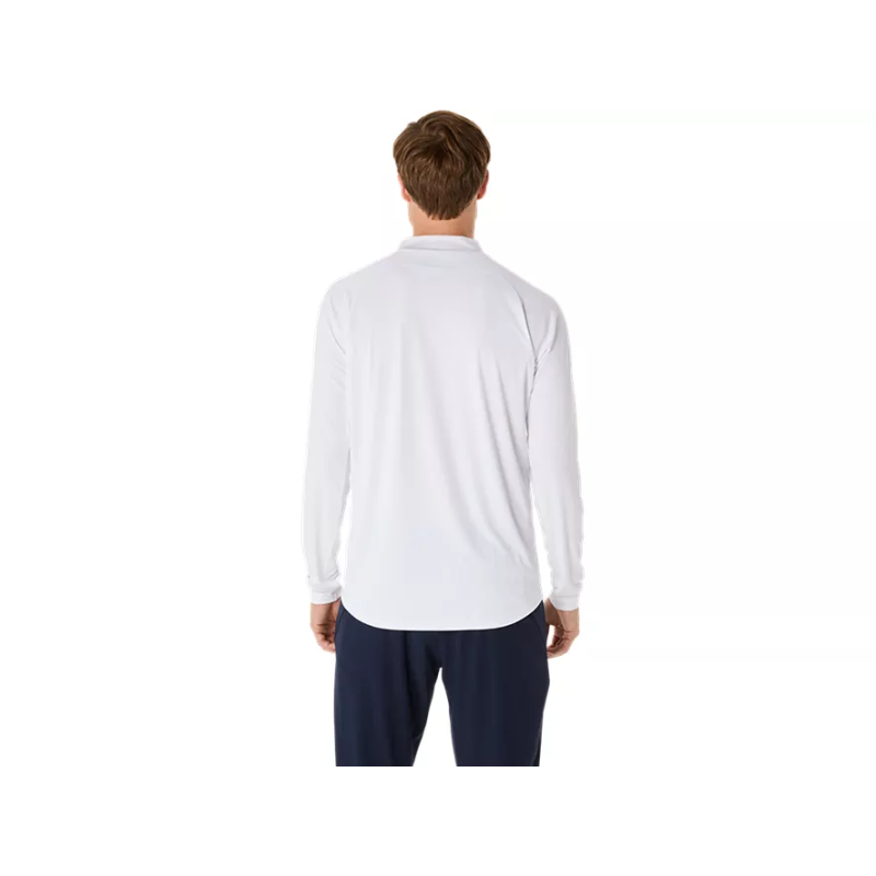 The Asics Match Long Sleeve 1/2 Zip Top delivers a lightweight layer of performance warmth for on-court play or training. Designed with moisture-wicking fabric and strategic ventilation zones, this top helps regulate body temperature while allowing freedom of movement. Its half-zip closure adds versatility for layering, and the white colourway keeps your look clean and classic.
