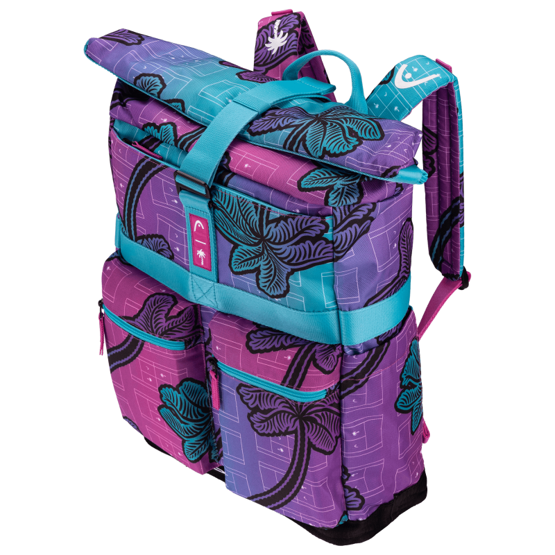 Bring tropical flair to the court with the HEAD Tour Backpack 30L PTC Edition, a standout piece from the exclusive collaboration between HEAD and Palm Tree Crew, the lifestyle brand of DJ Kygo. Combining HEAD's high-performance design with the carefree energy of summer, this backpack features a roll-top main compartment, dedicated racquet storage, and eye-catching palm tree patterns in vibrant colours. It's the perfect mix of function and fashion for players who live both the sport and the lifestyle.